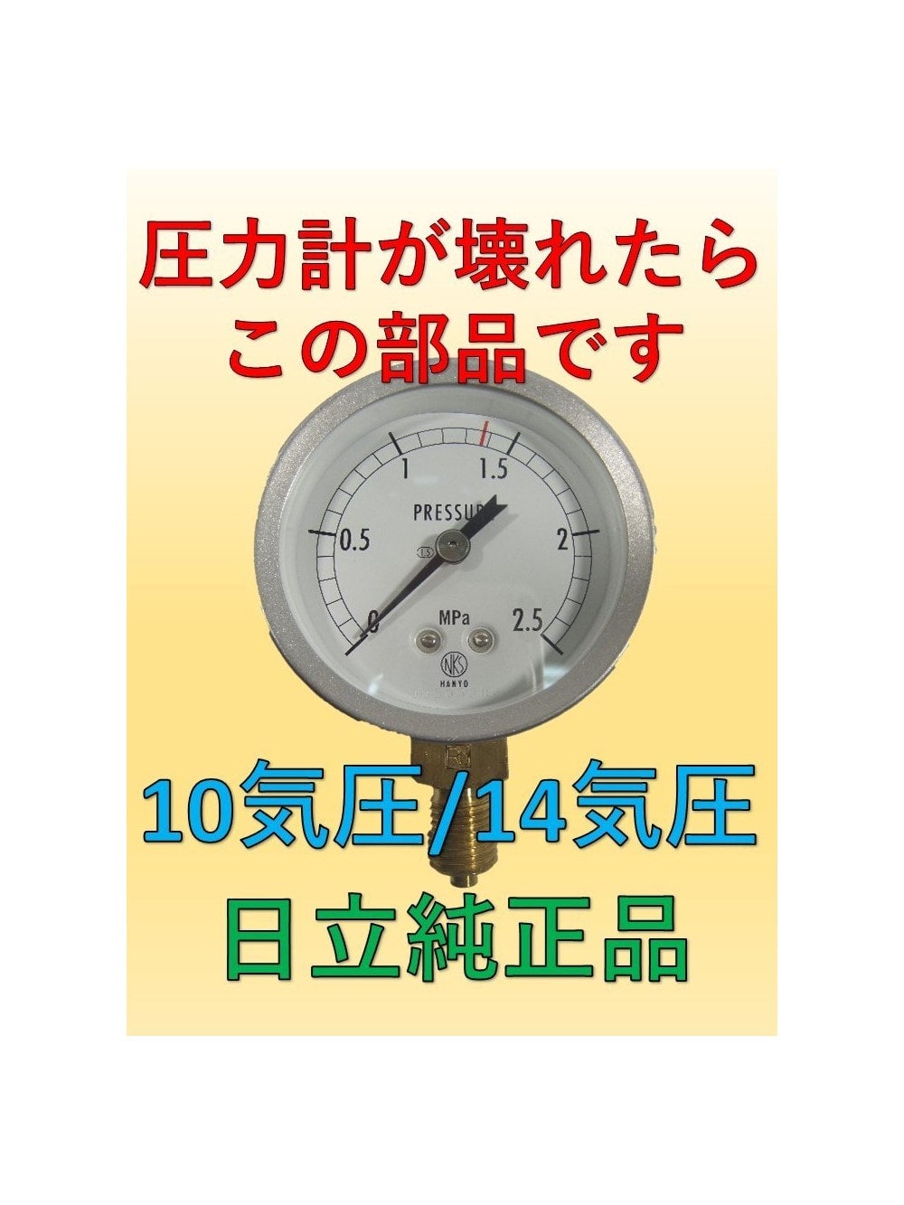 コンプレッサー修理 コンプレッサーの【圧力計】が壊れたら迷わずこの部品です 日立純正品 取り付け部1/4 10気圧 14気圧対応 | 藤井商店